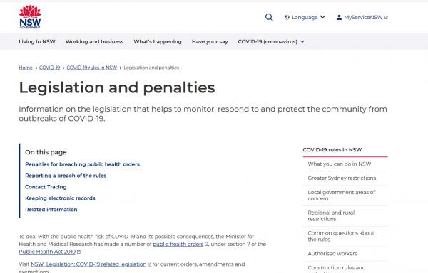 Policja w Nowej Południowej Walii (NSW) niedawno podniosła grzywny za złamanie ograniczeń zdrowotnych, w tym 500 USD za nienoszenie maski, 1000 USD za naruszenie nakazu zdrowia publicznego i 5000 USD za nieudostępnienie danych kontaktowych lub podążanie za wskazówkami dotyczącymi samo-izolacji.