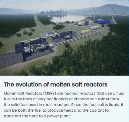 IMSR firmy Terrestrial Energy wykorzystuje stopioną sól jako paliwo i chłodziwo, ze zintegrowanymi komponentami, które mogą dostarczać ciepło bezpośrednio do obiektów przemysłowych lub wykorzystywać je do wytwarzania energii elektrycznej. Terrestrial Energy ma na celu uruchomienie pierwszych elektrowni opartych na małym reaktorze modułowym w ciągu dekady.
