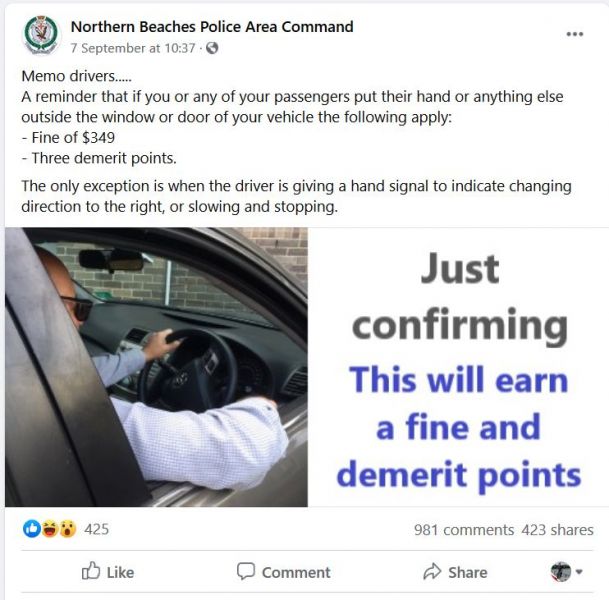 I tak oto policja w Nowej Południowej Walii wprowadziła nowe „prawo”, które naprawdę jest tylko dodatkowym urzędniczym widzimisię, które surowo karze kierowców za prowadzenie samochodu z jakąkolwiek częścią ciała (niekoniecznie kierowcy ale i pasażera) wystającą poza budowę pojazdu. A zatem, może to być łokieć czy opuszczone przez okno pojazdu ramię.