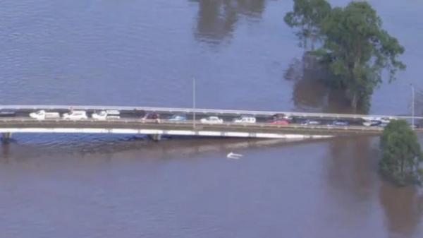 Zdjęcia lotnicze ukazują samochody utknięte na Woodburn Bridge, około 34 km od zdewastowanego przez powódź LismorePremier dał znać, że został poinformowany przez Biuro Meteorologii, że skutki powodzi mogą sięgać na południe aż do Tasmanii, w tym do regionu East Gippsland w stanie Wiktoria.