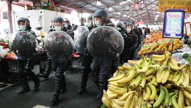 Wczoraj o jedenastej rano stosunkowo niewielka grupa ludzi (około 250), zebrała się na Rynku Wiktorii (w sekcji owoców i warzyw) aby protestować przeciwko restrykcjom wprowadzanym i przedłużanym w nieskończoność przez socjalistę Daniela Andrews w Wiktorii. Przeciwko nim rząd wysłał mniej więcej tyleż samo policjantów uzbrojonych w hełmy, odzież ochronna tarcze i specjalnie długie pałki. Prócz tego wysłano przeciwko protestującym kilkunastu policjantów na koniach jak również wspomaganie powietrzne (helikopter).