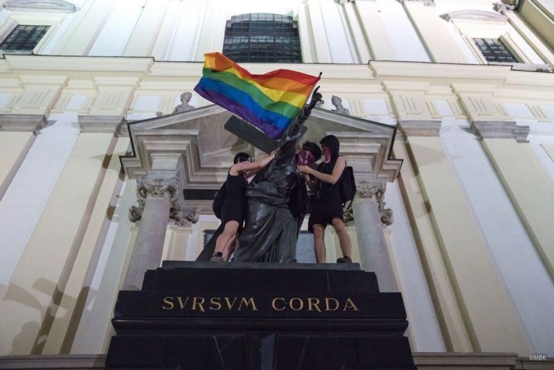 Akcja przeprowadzona przez Fundację Życie i Rodzina byłą odpowiedzią na prowokację „aktywistów” LGBT, którzy w centrum Warszawy zbezcześcili figurę upadającego pod krzyżem Jezusa, kolejne pomniki przystroili w kolory LGBT, a na drzwiach Pałacu Prezydenckiego zawiesili sprofanowane wizerunki Jezusa Miłosiernego i Matki Bożej Częstochowskiej z motywami 6-kolorowej tęczy. Po całej akcji pochwalili się swoimi dokonaniami publicznie w internecie.