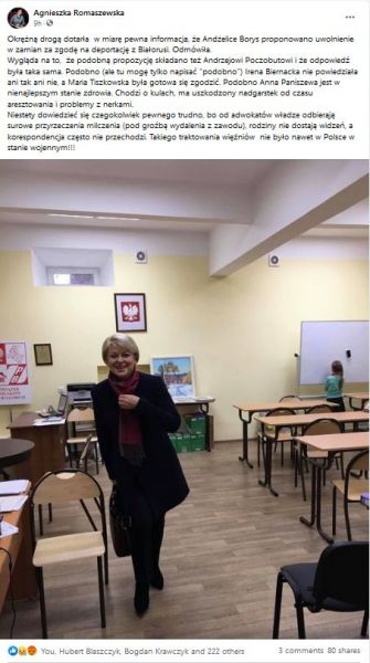 Poniżej zamieszczamy wpis dotyczący tej sprawy z konta Agnieszki Romaszewskiej z FB: