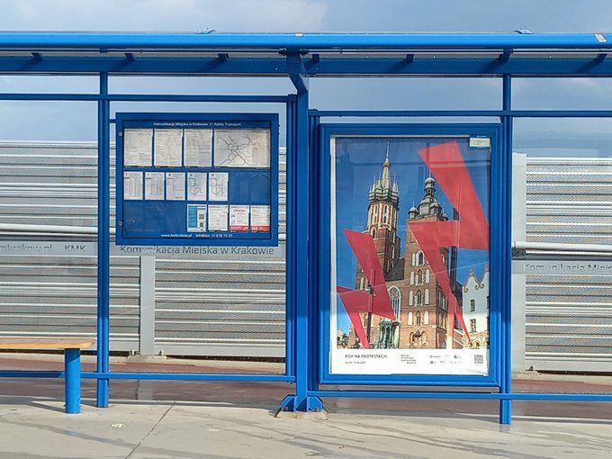 Na przystankach komunikacji miejskiej w Krakowie porozwieszano ostatnio dosyć kontrowersyjny plakat. Plakat przedstawia katolicką Bazylikę Mariacką z aborcyjnymi symbolami czerwonych piorunów.