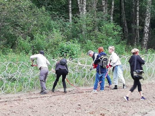Do incydentu przy granicy z Białorusią koło wsi Szymaki (Podlaskie) doszło w niedzielę po południu. Jak widać na nagraniach umieszczonych w mediach społecznościowych, grupa osób weszła na pas drogi granicznej, użyła nożyc do metalu, zaczepiła liny i próbowała rozerwać zasieki z drutu kolczastego ułożone na granicy Polski z Białorusią.