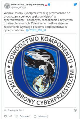 Dodał, że dziś do życia powoływane jest dowództwo komponentu Wojsk Obrony Cyberprzestrzeni. Wskazał, że dowództwo będzie ściśle zintegrowane z Narodowym Centrum Bezpieczeństwa Cyberprzestrzeni.