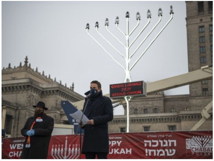 W piątek, 11 grudnia, Rafał Trzaskowski - prezydent Warszawy oraz rabin Szalom Ber Stambler - dyrektor Chabad Lubawicz Polska zapalili symboliczne świece na Chanuki. A jakież miejsce lepsze byłoby niż przed Pałacem Kultury i Nauki.