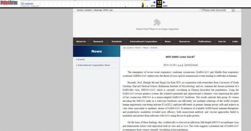 Pierwsza z tych rewelacji to fakt o zniszczeniu stron internetowych instytutu chorób zakaźnych w Wuhan, które poprzednio z dumą ukazywały partnerskie linki z medycznymi i badawczymi instytucjami w Stanach Zjednoczonych.