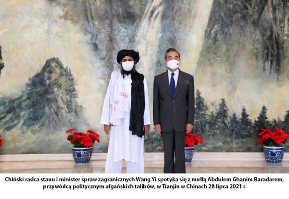 Przewidując zmianę władzy w regionie, chiński reżim gościł niedawno delegację talibów w mieście Tianjin. Minister spraw zagranicznych reżimu Wang Yi spotkał się 28 lipca z wysokim przywódcą talibów mułłą Abdulem Ghanim Baradarem i ośmioma innymi przedstawicielami talibów, sygnalizując uznanie przez Pekin tej grupy za legalną siłę polityczną w kraju.