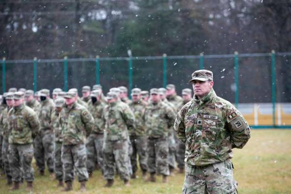 Według Kirby'ego w komunikacie medialnym, żołnierze przydzieleni do 53-go Brygadowego Zespołu Bojowego Piechoty otrzymali rozkaz przeniesienia się w inne miejsce w Europie. Ich dotychczasową rolą było doradzanie i monitorowanie ukraińskich sił zbrojnych w ramach Wspólnego Wielonarodowościowego Zespołu Szkoleniowego - Ukraina.