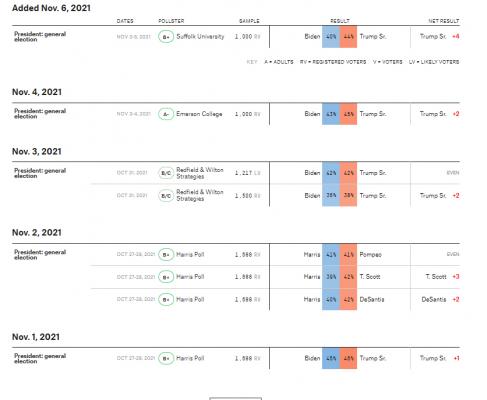 Blog ankietera Five-Thirty-Eight ujawnia zwycięstwa Trumpa nad Bidenem w najnowszych sondażach "Emerson", Redfield & Wilton Strategies and Harris".