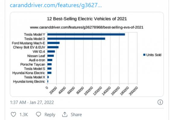 Musk ma w dużej mierze rację, biorąc pod uwagę, że Tesla Model Y i Model 3, oba produkowane w USA są zdecydowanie najlepiej sprzedającymi się pojazdami elektrycznymi w USA, wyprzedzając dramatycznie GM i Forda.