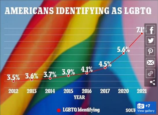 Amerykanie identyfikujący się jako LGBTQ stanowią 7,1 proc. populacji, w porównaniu z 5,6 proc. rok temu. W 2012 roku 3,5 proc. Amerykanów zidentyfikowało jako LGBTQ.