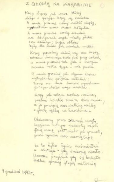 Krzysztof Kamil Baczyński (1921-1944) - polski poeta, jeden z najwybitniejszych przedstawicieli tzw. “Pokolenia Kolumbów”. Brał udział w Powstaniu Warszawskim, żołnierz Armii Krajowej. Poległ 4 sierpnia 1944 roku od wrogiej kuli niemieckiego snajpera. Miał zaledwie 23 lata.