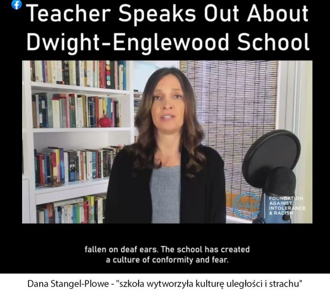 Dana Stangel-Plowe, nauczycielka języka angielskiego, w drogiej prywatnej szkole "The Dwight-Englewood School" w New Jersey, złożyła rezygnacją ze swojej pozycji ze względy na wprowadzony w tej szkole program nauczania, który opiera się na neo-bolszewickiej rasowej teorii krytycznej.