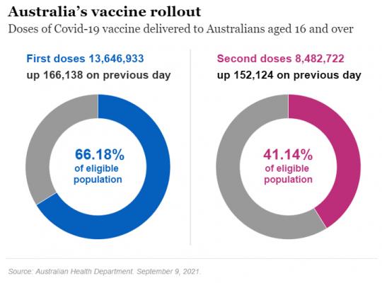 Wiadomość ta dotarłą, w czasie gdy Victoria dołączyła do Nowej Południowej Walii, Tasmanii i Australijskiego Terytorium Stołecznego, osiągając 70-procentowy cel pierwszej dawki.