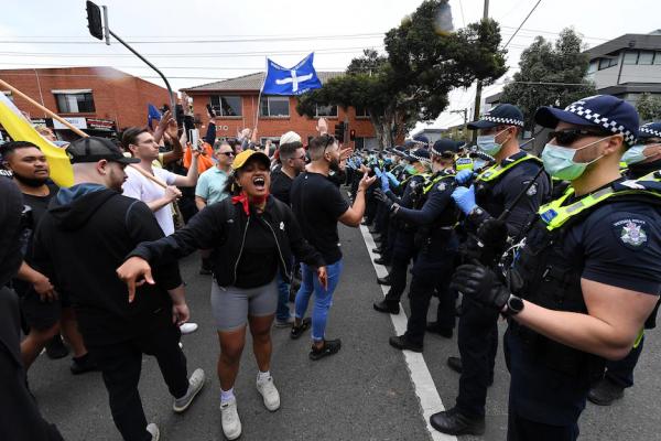 Wiktoriańska policja dokonała wielu aresztowań i i użyła gazu łzawiącego , gdy na ulicach Melbourne zorganozowano protesty przeciwko lockdownowi. Protestującym udało się uniknąć kordonu policji mającego na celu utrzymanie ich z dala od centrum miasta, zamiast tego przenieśli swoją demonstrację na przedmieścia Richmond.