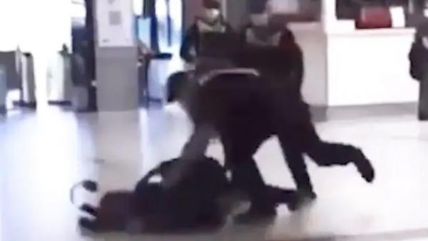 Szokujące nagranie pokazuje policjanta idącego w kierunku mężczyzny stojącego na stacji Flinders Street, po czym brutalnie chwytającego go za klatkę piersiową i powlającego go na posadzkę tak, że mężczyzna uderzył głową o ziemię.