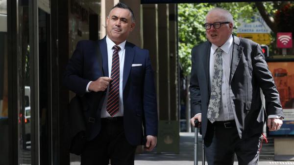Były zastępca premiera NSW John Barilaro, po lewej, przybywa, aby złożyć zeznania w ICACBarilaro powiedział, że relacje pani Berejiklian z byłym deputowanym Wagga Wagga Darylem Maguire powinny były być „ujawnione”, zanim dotacja finansowa dla Australian Clay Target Association, proponowana przez pana Maguire, została poddana dyskusji na posiedzeniu komisji ds. przeglądu wydatków rządu w 2016 roku.