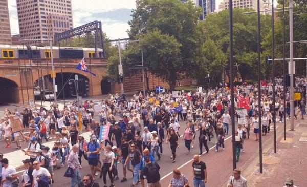 Tysiące protestujących pojawiło się w Sydney, Melbourne, Hobart i na Złotym Wybrzeżu w odpowiedzi na stanowisko rządów na pandemię COVID-19 i nakaz szczepień.