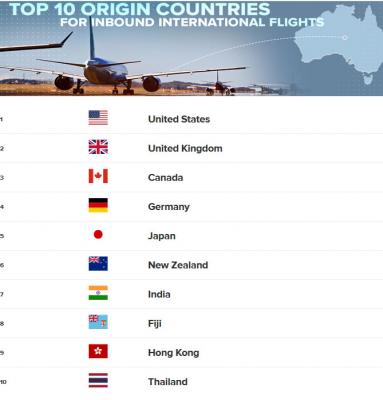 Światowa witryna turystyczna Expedia ujawniła dziś 10 państw, z których najczęściej przybywają międzynarodowi turyści do Australii.