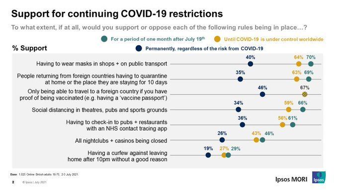 Jeszcze bardziej szokujące jest, że 35% Brytyjczyków chciałaby by 10-dniowa kwarantanna po powrocie z zagranicy obowiązywała bez względy czy Covid-19 znajdzie się pod kontrolą cz też nie, a 46% uważa iż podróże zagraniczne powinny być dozwolone tylko dla tych, którzy są zaszczepieni.