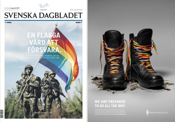 Försvarsmakten czyli Szwedzkie Siły Zbrojne szeroko rozpowszechniały, gdzie tylko mogły, hasła solidarności z niezrównoważonymi mentalnie osobnikami głoszącymi ideologie LGBTQ. Hasła powtarzane w mediach społecznościowych armii szwedzkiej głosiły między innymi : "Nie zawsze maszerujemy prosto" (czyli że zbaczamy) oraz "Oto flaga, której warto bronić" (a flaga jest tęczowa).