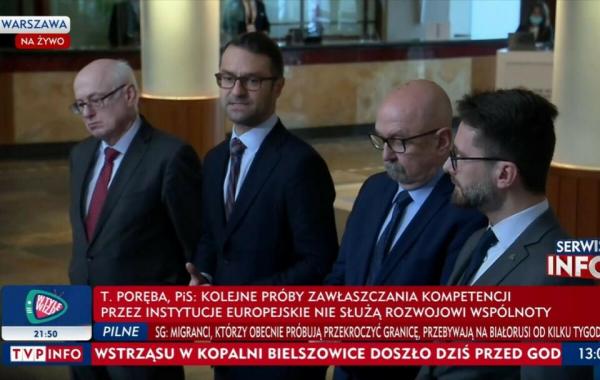 W trakcie przerwy w obradach konferencję prasową zorganizowali europosłowie PiS – prof. Zdzisław Krasnodębski, prof. Ryszard Legutko oraz Tomasz Poręba – oraz wicerzecznik PiS Radosław Fogiel.