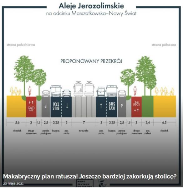 Kierowcy będą niezadowoleni ze zmian. Na odcinku od Marszałkowskiej do Nowego Światu będą mogli korzystać tylko z jednego pasa ruchu w obu kierunkach. Więcej miejsca zyskają za to rowerzyści, dla których zostanie wytyczona ścieżka o szerokości 3 metrów z każdej strony. Pomiędzy jezdnią, a ścieżką zasadzony ma być szpaler drzew. Zmiany dotkną również parkujących. Po przebudowie w zatoce postojowej będzie można parkować tylko równolegle, co znacząco zmniejszy liczbę miejsc parkingowych.