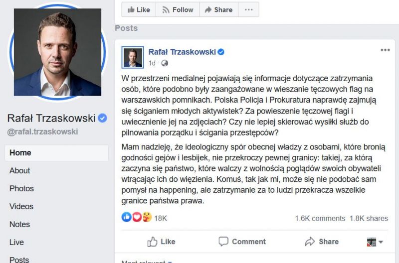 Prezydent Warszawy nie jest zainteresowany profanacją posągu Chrystusa ani obrażaniem uczuć religijnych milionów katolików. Co zabolało Rafała Trzaskowskiego to fakt, że policja aresztowała „aktywistki” walczące o „godność” perwersyjnych mniejszości seksualnych, które de facto dopuściły się aktów wandalizmu.