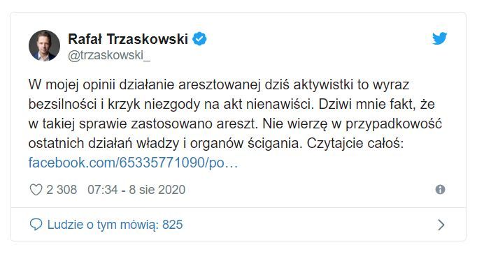 Ciekawa jest tutaj reakcja Rafała Trzaskowskiego, który broni aktów wandalizmu Margo i uważa, że jego zachowanie jest normalną reakcją na „niesprawiedliwość społeczną” (LINK).