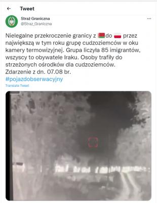 Według polskich strażników granicznych, wideo zostało nakręcone kamerą termowizyjną w nocy 7 sierpnia. Wszyscy członkowie grupy okazali się być obywatelami Iraku. Migranci zostali zatrzymani w ośrodku dla cudzoziemców, czyli technicznie cel ich został osiągnięty. Teraz Polska będzie musiała się martwić co dalej z tymi, tak zwanymi, "uchodźcami" uczynić. Z cała pewnością Białoruś ich z powrotem nie przyjmie.