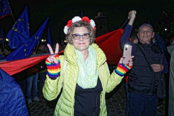 Dominującymi kolorami wiecu były kolory UE i tolerancji LGBTQ
