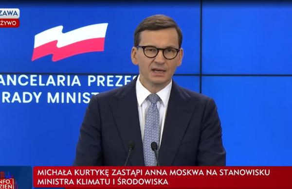Premier poinformował, że Michał Kurtyka ze względów osobistych zdecydował o odejściu ze stanowiska ministra klimatu i kierownictwo tego resortu obejmie Anna Moskwa.