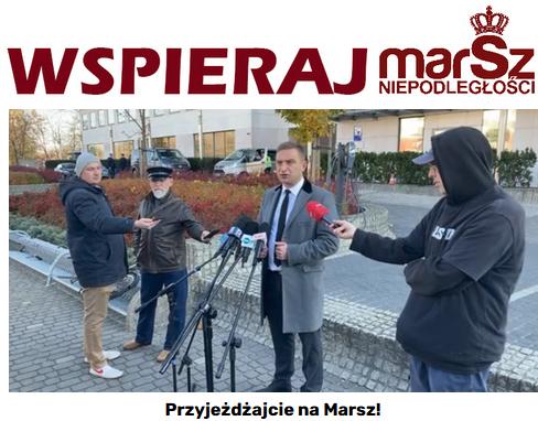Zapraszam wszystkich patriotów na tegoroczny Marsz Niepodległości, który może okazać się ważniejszy niż poprzednie. Prezydent Warszawy, jego pomocnicy w urzędach, sędziowska kasta mająca korzenie w SB czy media realizujące zagraniczne interesy nie powstrzymają Polaków przed demonstrowaniem miłości do Ojczyzny. Ruszymy z Ronda Dmowskiego i przejdziemy na błonia Stadionu Narodowego. W tym momencie mamy zarejestrowane zgromadzenie zwykłe w standardach covidowych.