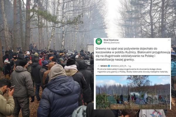 Resort opublikował też nagranie, na którym widać pojazdy poruszające się po obozowisku pod granicą Polski. Widać także wielu migrantów, namioty i dym z ogniska.