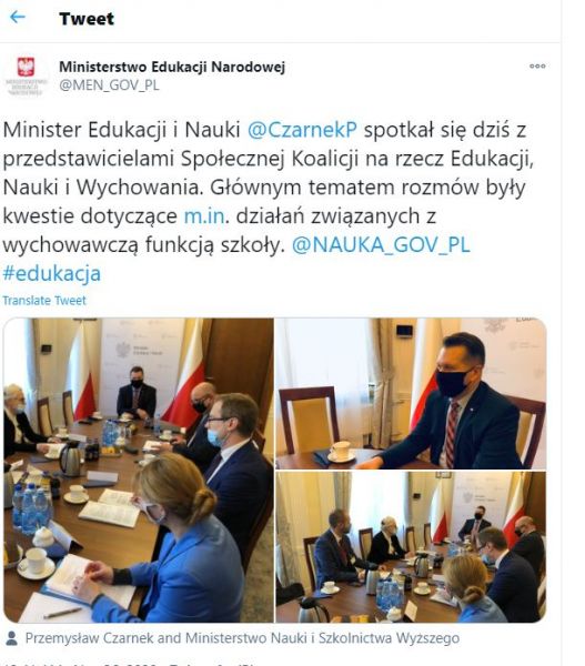 Minister Czarnek spotkał sie ze Społeczną Koalicją na rzecz Edukacji