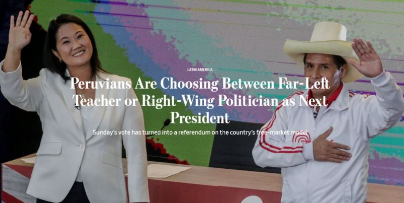 Wyborcy zaczęli rzucać swoje głosy w wyporach prezydenckich, które rozgrywają się pomiędzy dwójką kandydatów: jednym z nich jest Pedro Castillo, aktywista związkowy, któy chce całkowicie porzucić wolno-rynkowy model gospodarczy, a drugą kandydatką jest Keiko Fujimori, która reprezentuje ideologię polityczną swego ojca, byłego prezydenta Peru, ciągle odbywającego karę więzienia - Alberto Fujimori.
