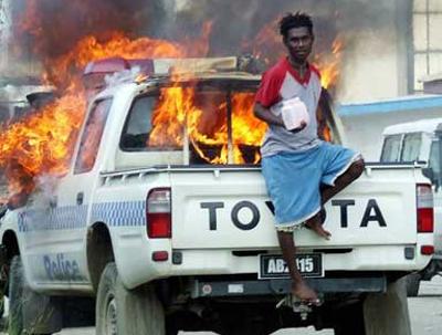 Protestujący rabują firmy (głównie w posiadaniu chińskim) i podpalili budynki publiczne i prywatne, w tym posterunek policji, szkołę średnią, duży oddział banku oraz wiele chińskich i lokalnych sklepów. Pojawiły się doniesienia o strzelaninach w stolicy.