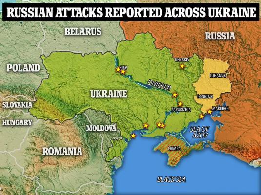 Niepotwierdzone doniesienia mówiły, że siły rosyjskie zniszczyły lub uczyniły bezużyteczną ukraińską marynarkę wojenną i przejęły kontrolę nad lotniskiem Boryspol w Kijowie.